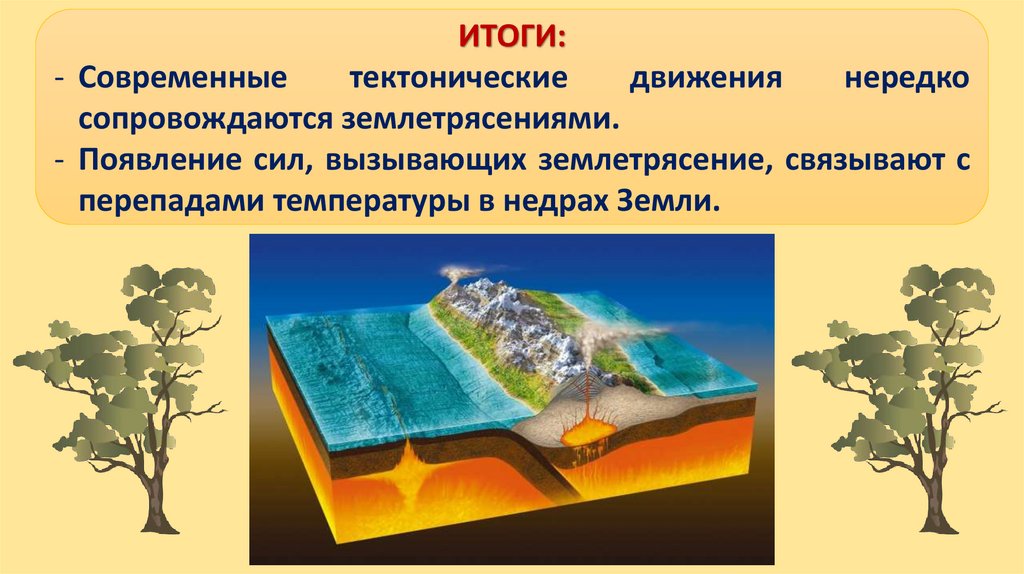 - Появление сил, вызывающих землетрясение, связывают с