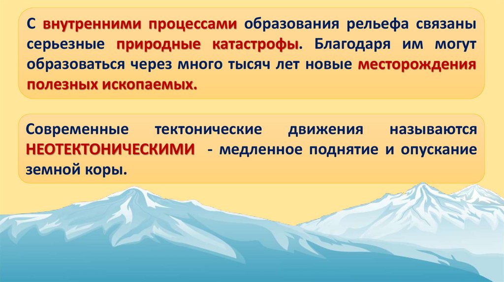 С внутренними процессами образования рельефа связанысерьезные природные катастрофы. Благодаря им могут
