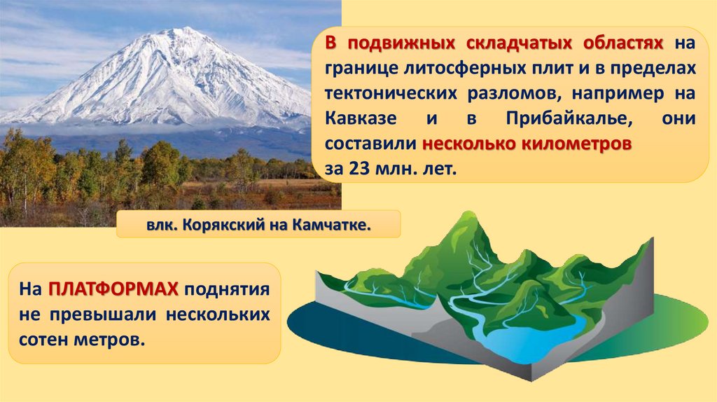В подвижных складчатых областях награнице литосферных плит и в пределах