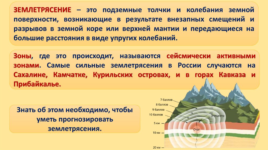 Зоны, где это происходит, называются сейсмически активными