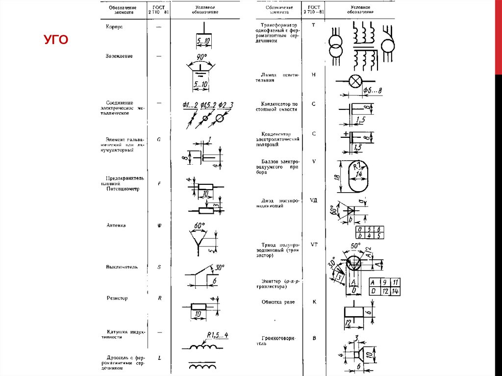 Некоторые УГО на схемах13. ПЕРЕЧЕНЬ ЭЛЕМЕНТОВ (гост 2.701)