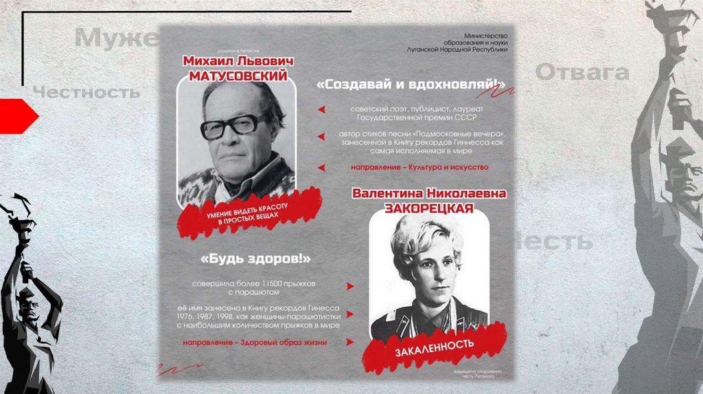че м п и о н о в , и з в е с т н ы х учё н ы х, п и с а т е ле й и п о э то в , ко с м о н а в т о в ,