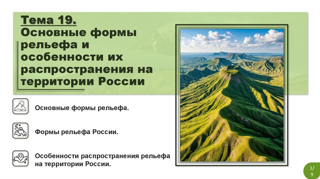 1. Тема 19. Основные формы рельефа и особенности их распространения на территории России