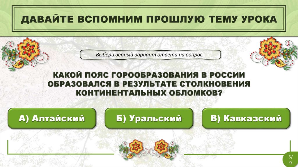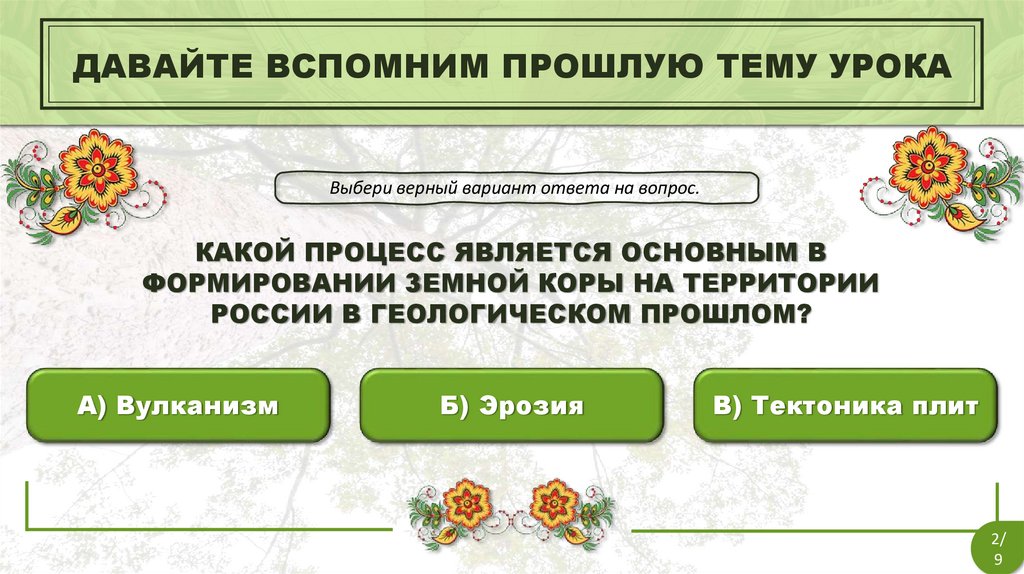ДАВАЙТЕ ВСПОМНИМ ПРОШЛУЮ ТЕМУ УРОКАВыбери верный вариант ответа на вопрос.