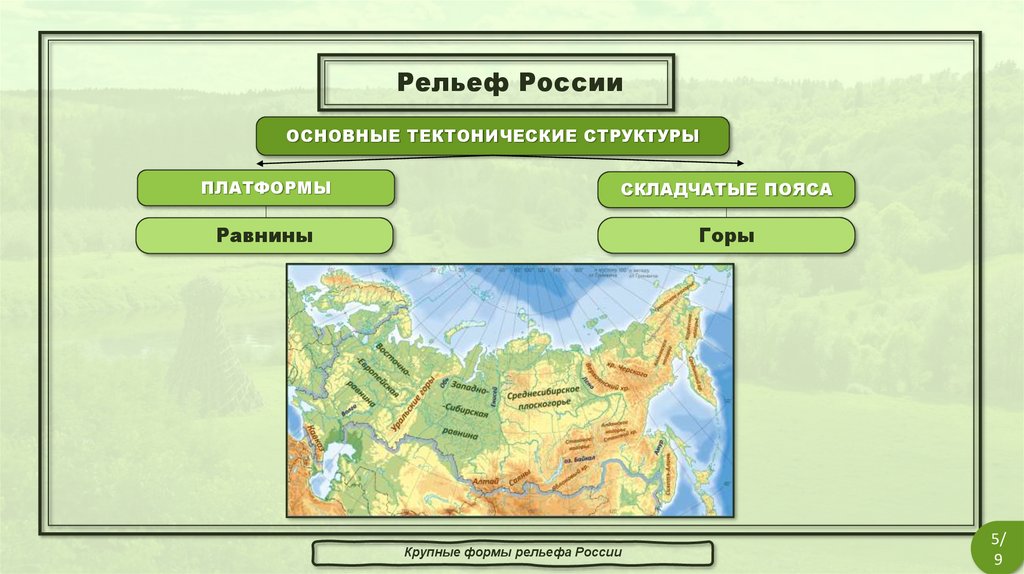 Рельеф РоссииОСНОВНЫЕ ТЕКТОНИЧЕСКИЕ СТРУКТУРЫ