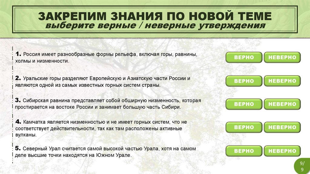 ЗАКРЕПИМ ЗНАНИЯ ПО НОВОЙ ТЕМЕвыберите верные / неверные утверждения
