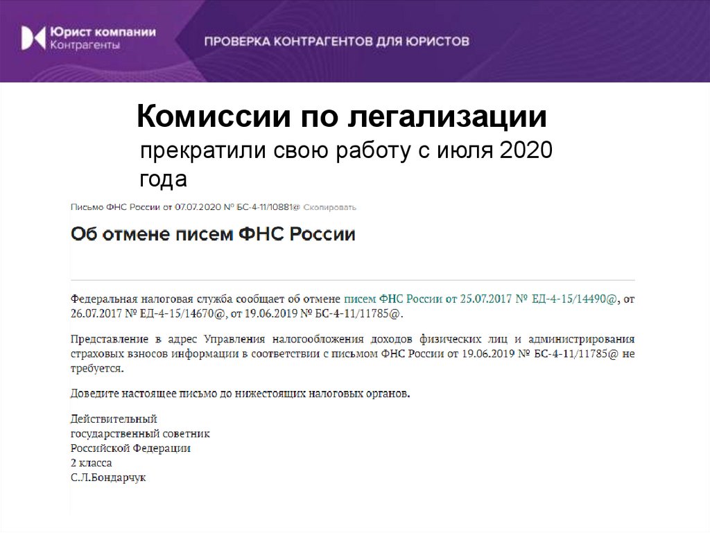 Комиссии по легализациипрекратили свою работу с июля 2020