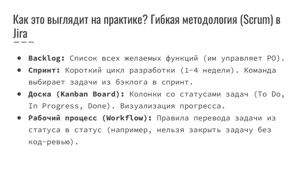 Как это выглядит на практике? Гибкая методология (Scrum) вJira