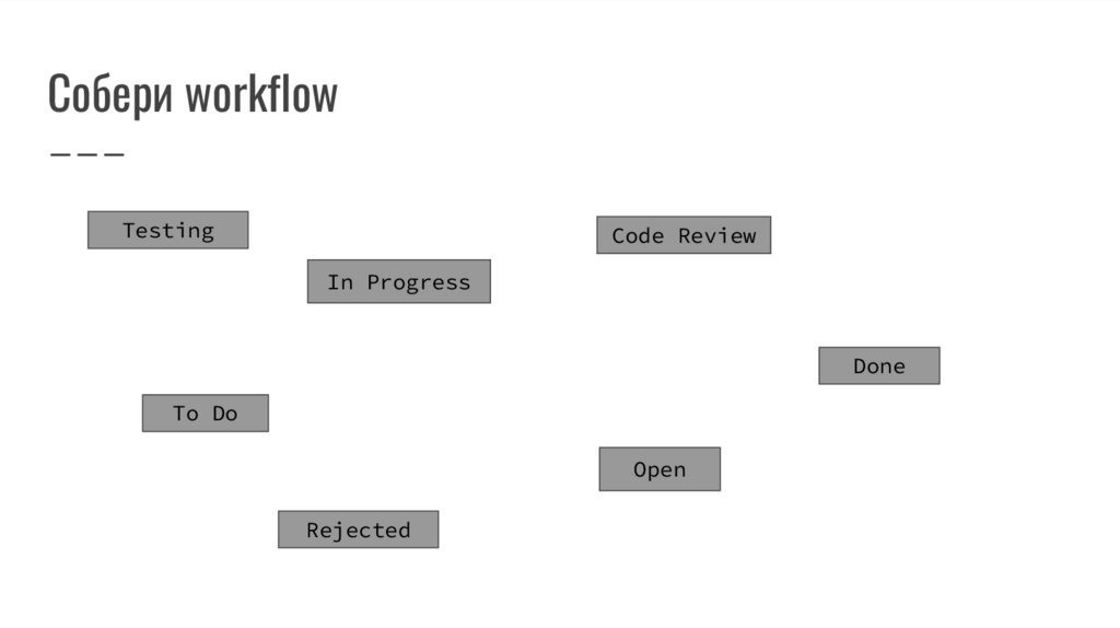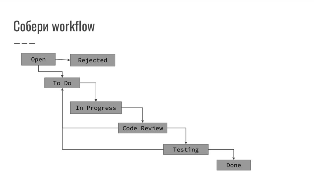 Статус: Open, In Progress, Code Review, Testing, Done