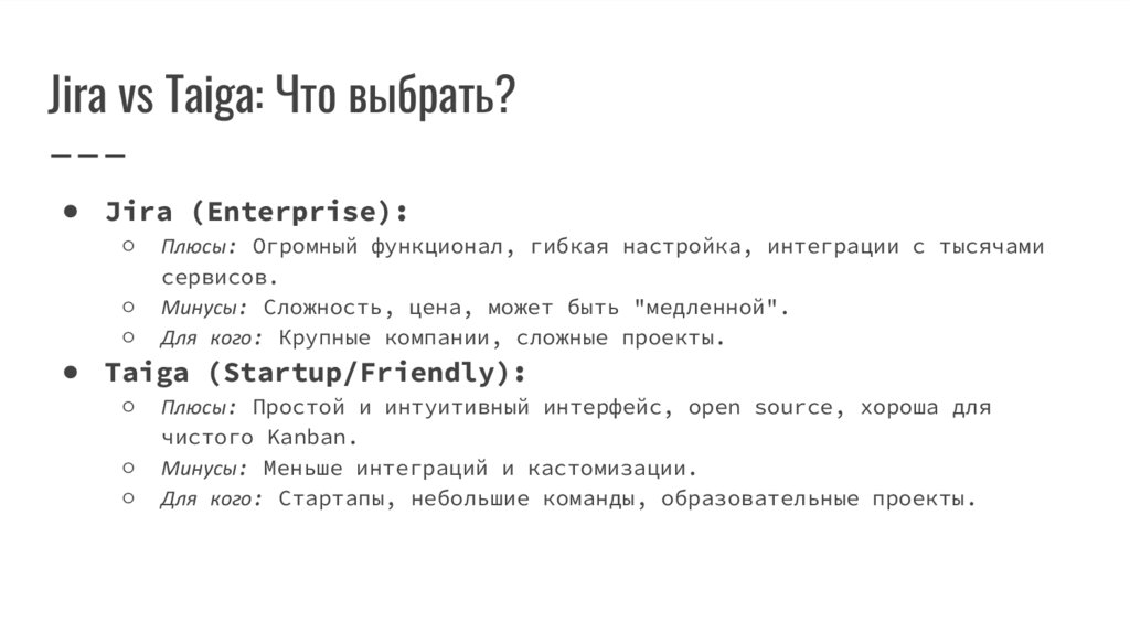 Jira vs Taiga: Что выбрать?● Jira (Enterprise):