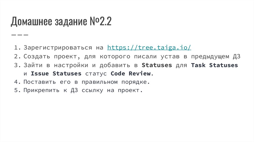 Домашнее задание №2.21. Зарегистрироваться на https://tree.taiga.io/