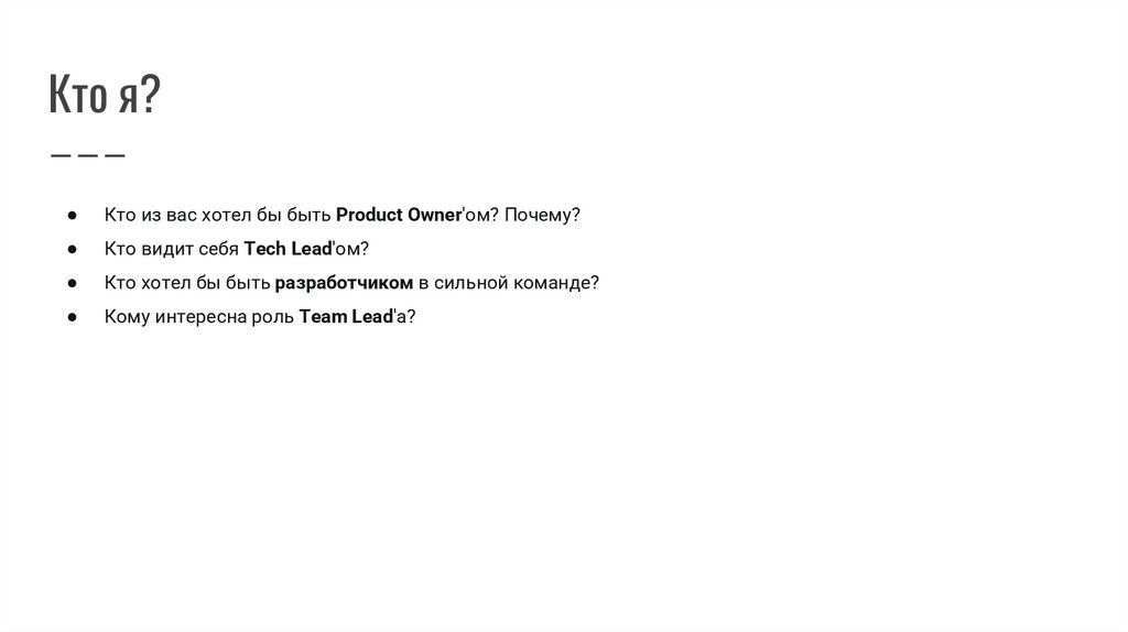 Кто я?Кто из вас хотел бы быть Product Owner'ом? Почему?