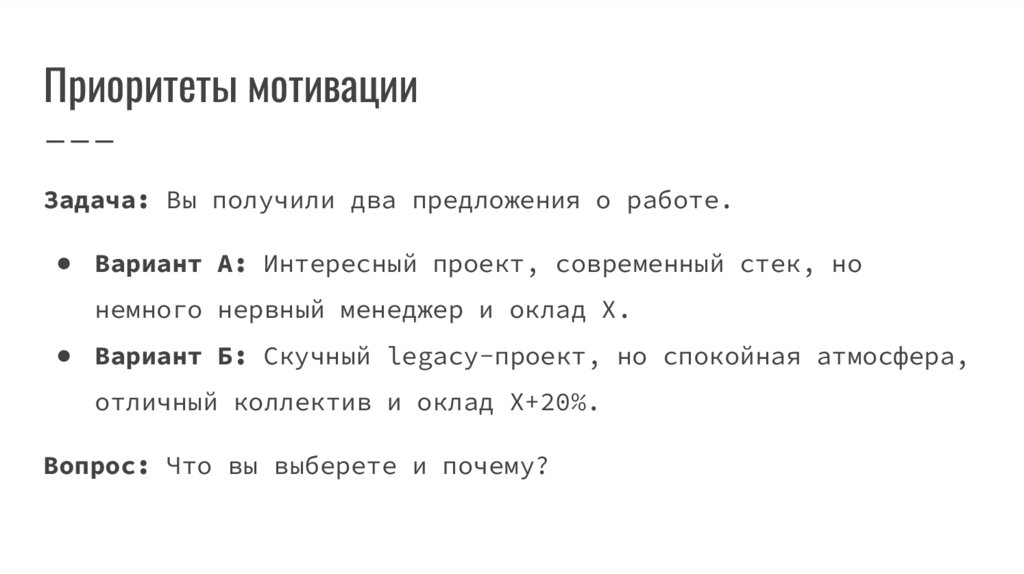Приоритеты мотивацииЗадача: Вы получили два предложения о работе.