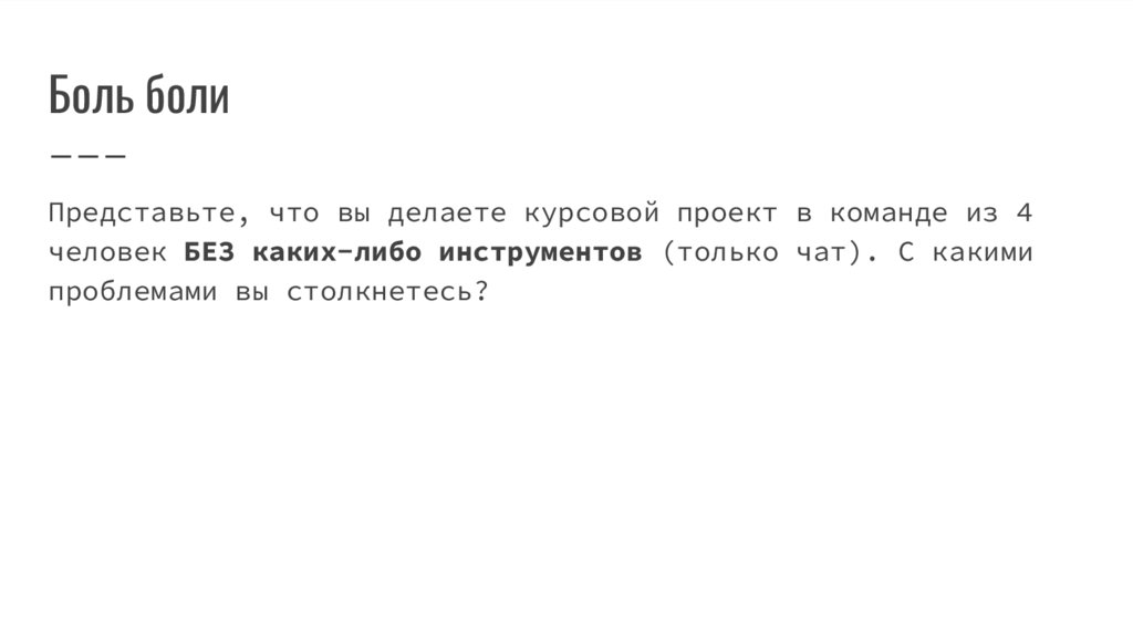Боль болиПредставьте, что вы делаете курсовой проект в команде из 4