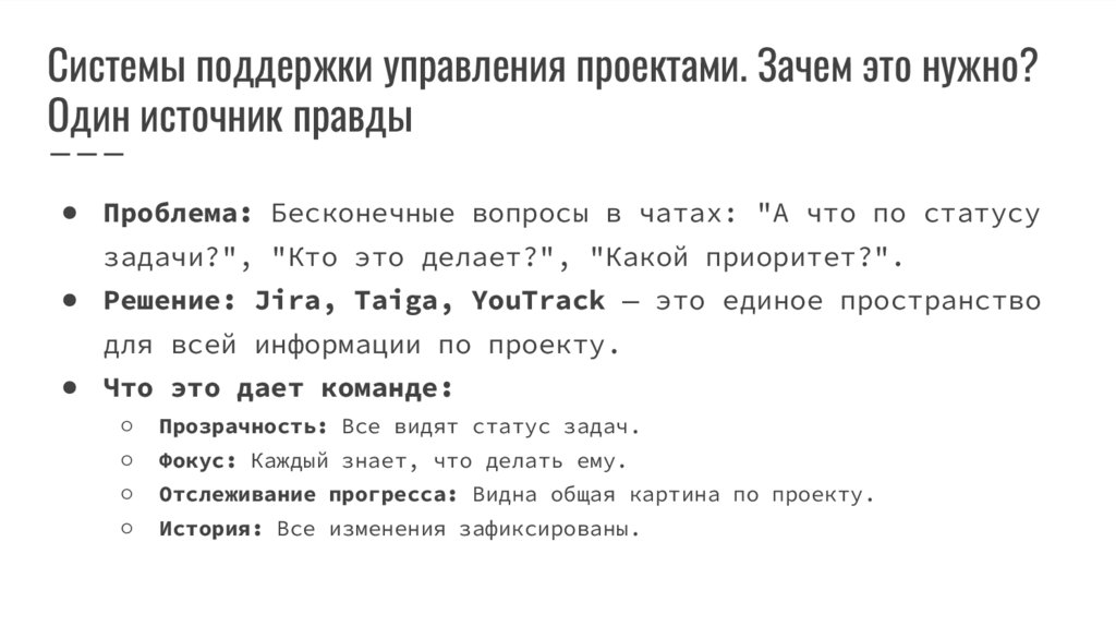 ● Решение: Jira, Taiga, YouTrack — это единое пространство