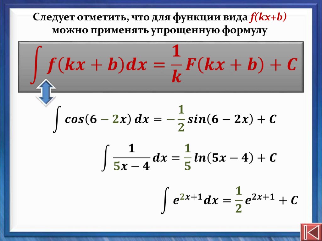 Следует отметить, что для функции вида f(kx+b)можно применять упрощенную формулу