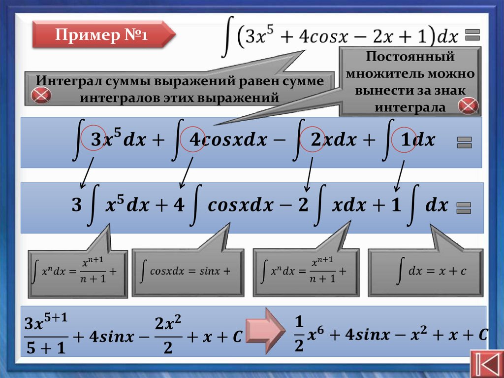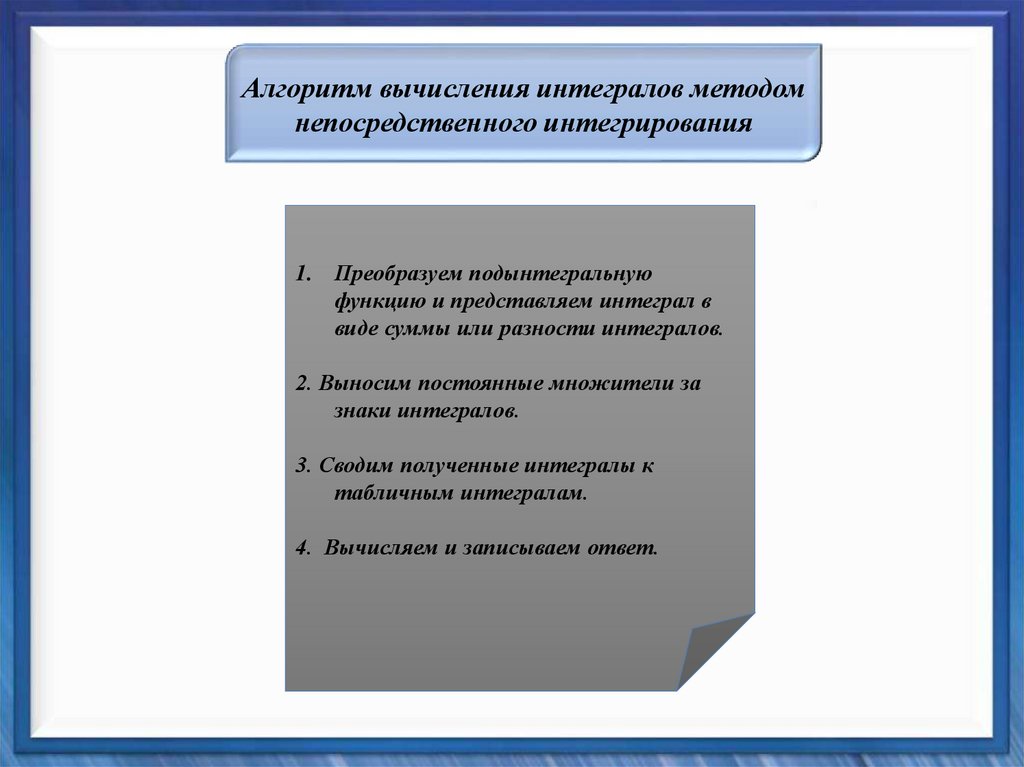 Алгоритм вычисления интегралов методомнепосредственного интегрирования