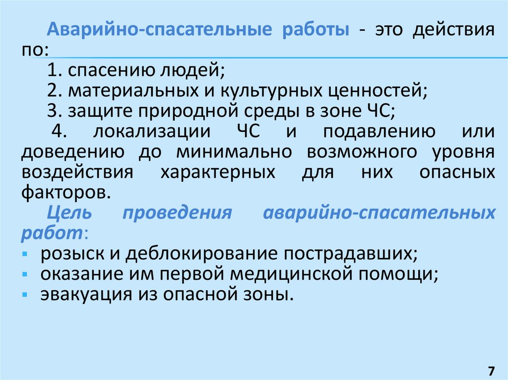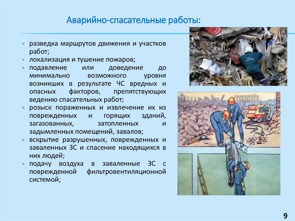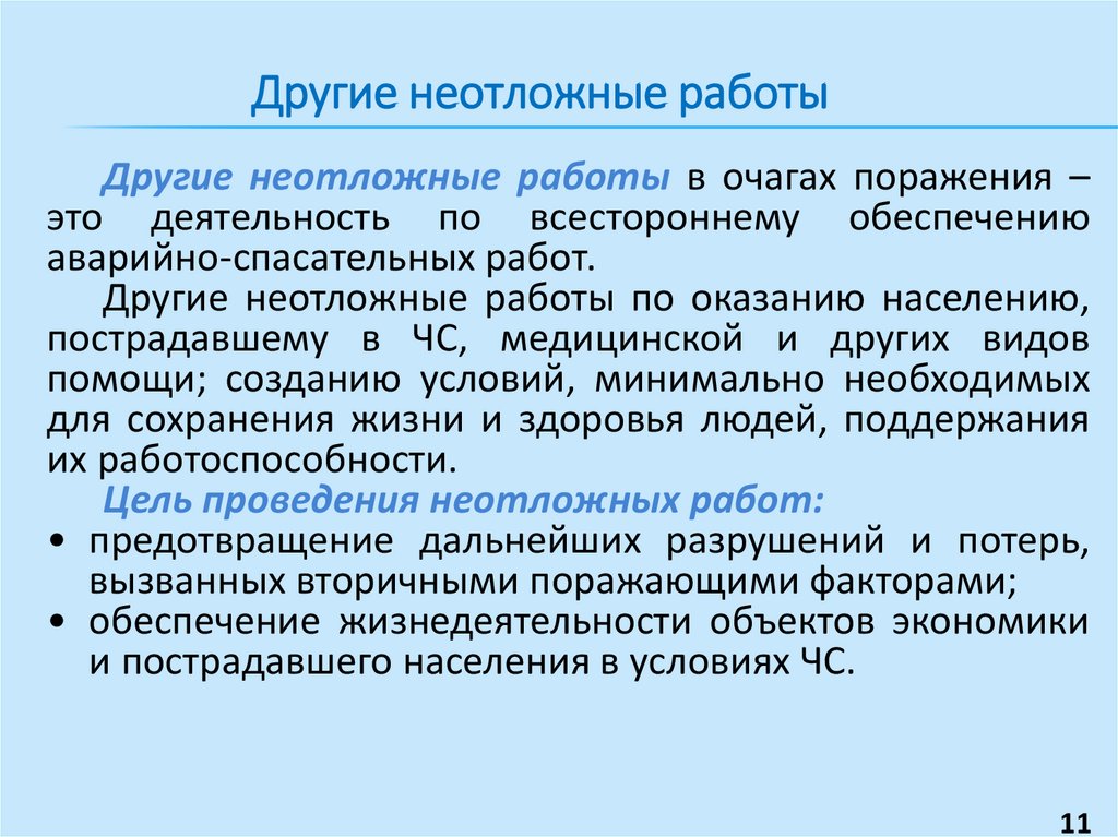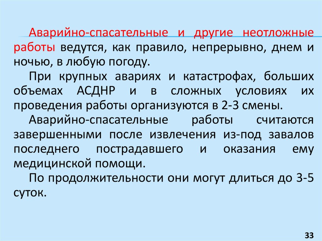 Аварийно-спасательные и другие неотложныеработы ведутся, как правило, непрерывно, днем и