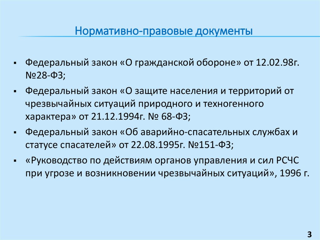 Нормативно-правовые документыФедеральный закон «О гражданской обороне» от 12.02.98г.