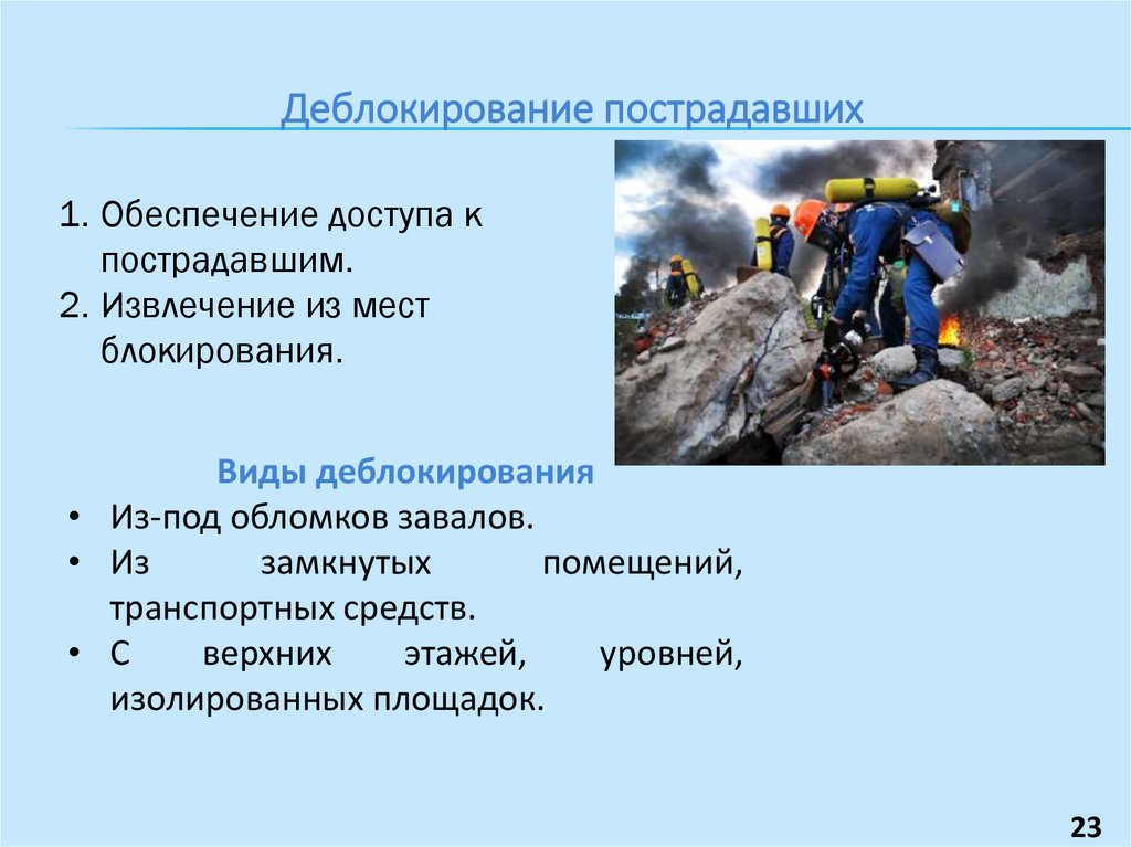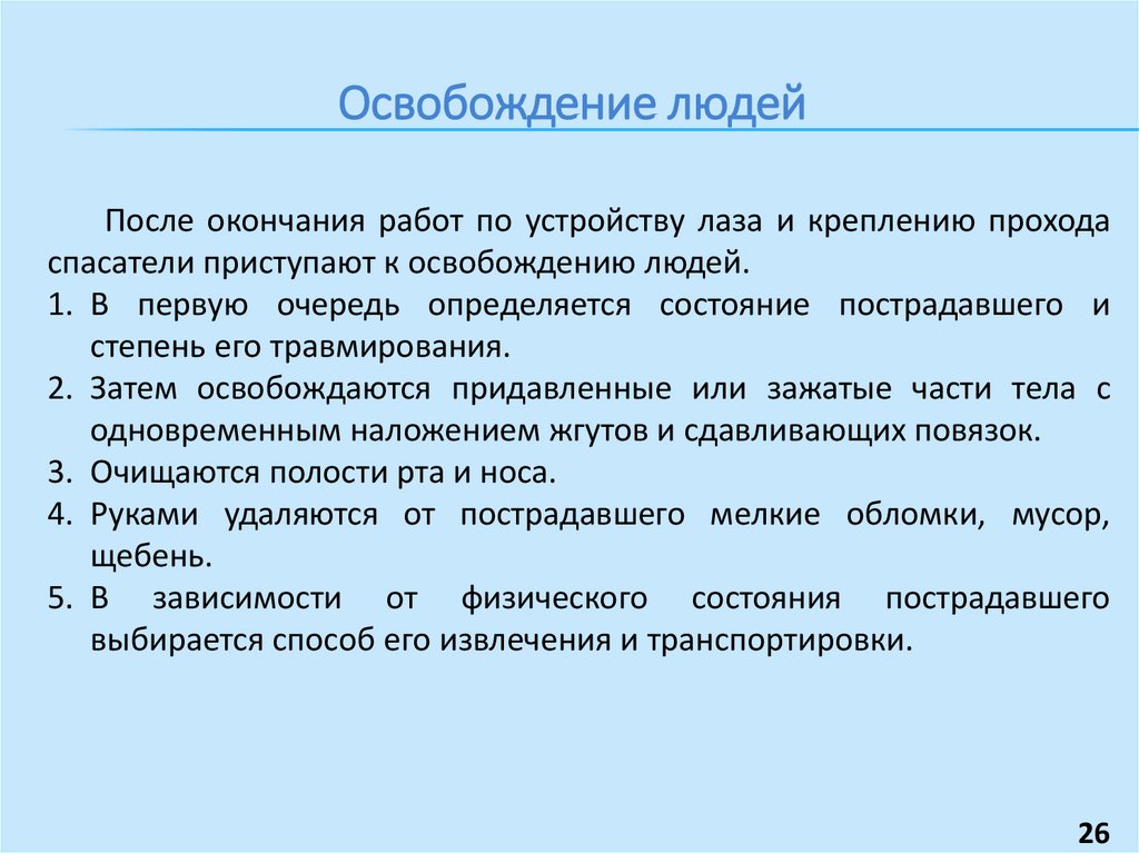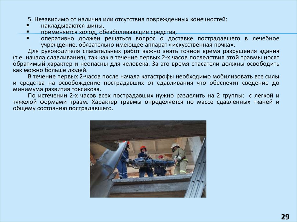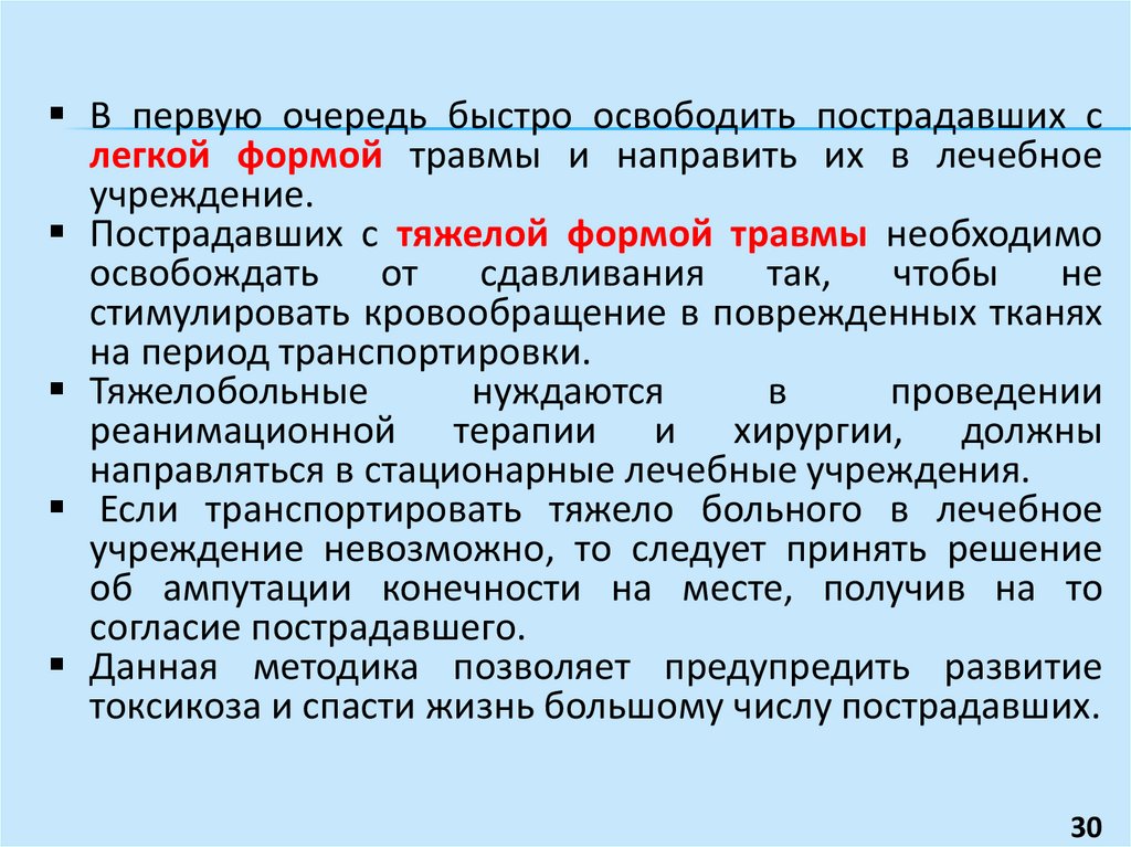 В первую очередь быстро освободить пострадавших слегкой формой травмы и направить их в лечебное