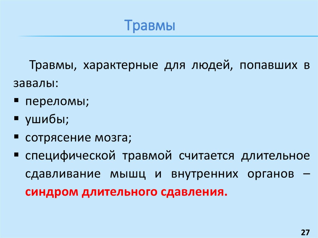 тяжелой формами травм. Характер травмы определяется по массе сдавленных тканей и