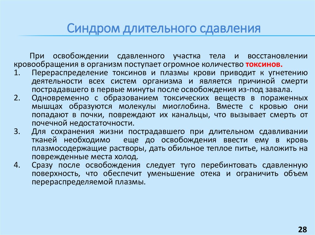и средства на освобождение пострадавших от сдавливания что обеспечит сведение до