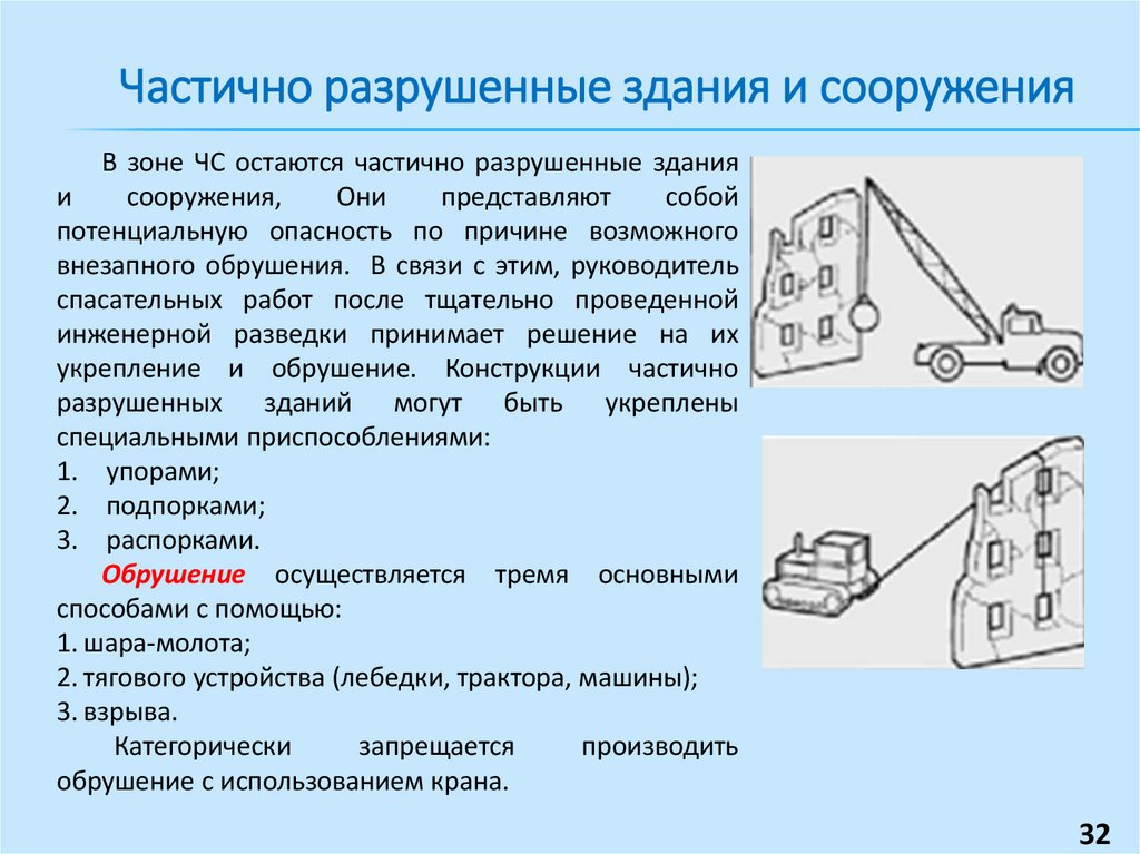 Частично разрушенные здания и сооруженияВ зоне ЧС остаются частично разрушенные здания