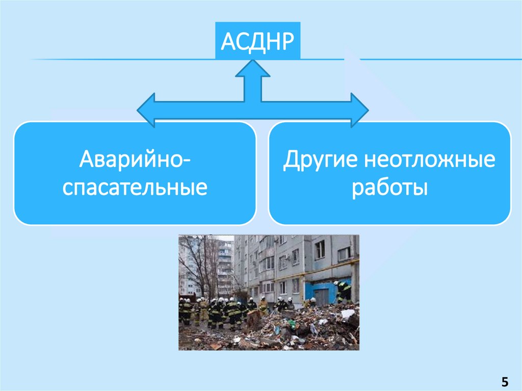АСДНР – это совокупность первоочередных работ в зоне ЧС,заключающаяся в спасении и оказании помощи людям,