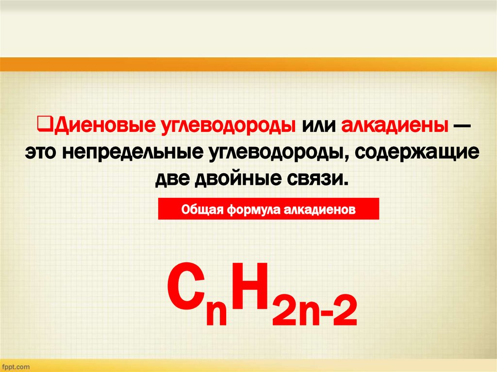 Диеновые углеводороды или алкадиены —это непредельные углеводороды, содержащие