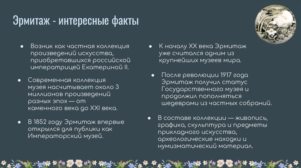 Эрмитаж - интересные фактыВозник как частная коллекция
