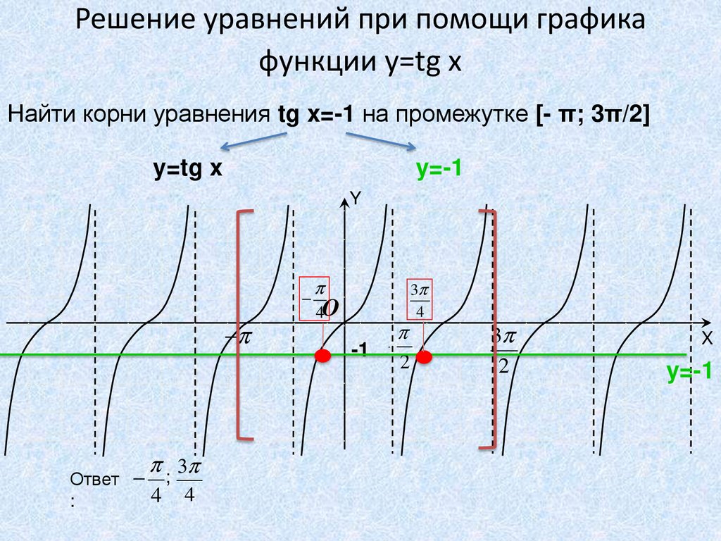Найти корни уравнения tg x=-1 на промежутке [- π; 3π/2]
