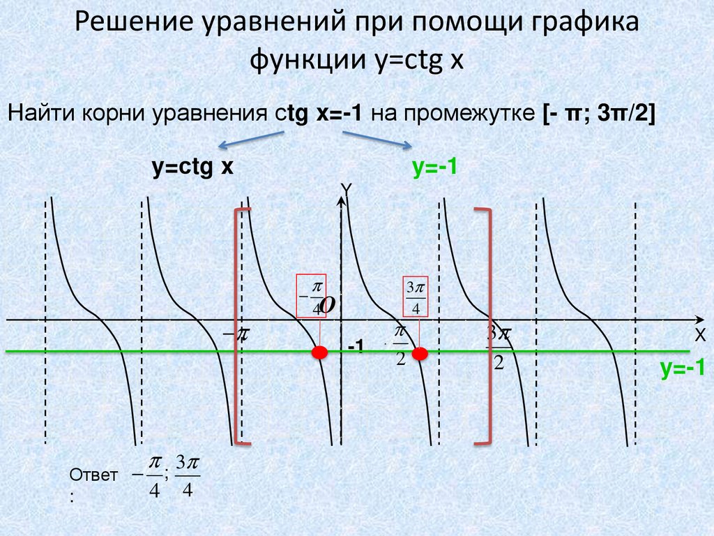 Найти корни уравнения сtg x=-1 на промежутке [- π; 3π/2]