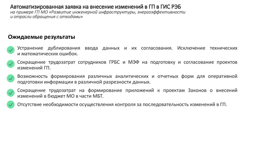 Автоматизированная заявка на внесение изменений в ГП в ГИС РЭБна примере ГП МО «Развитие инженерной инфраструктуры, энергоэффективности
