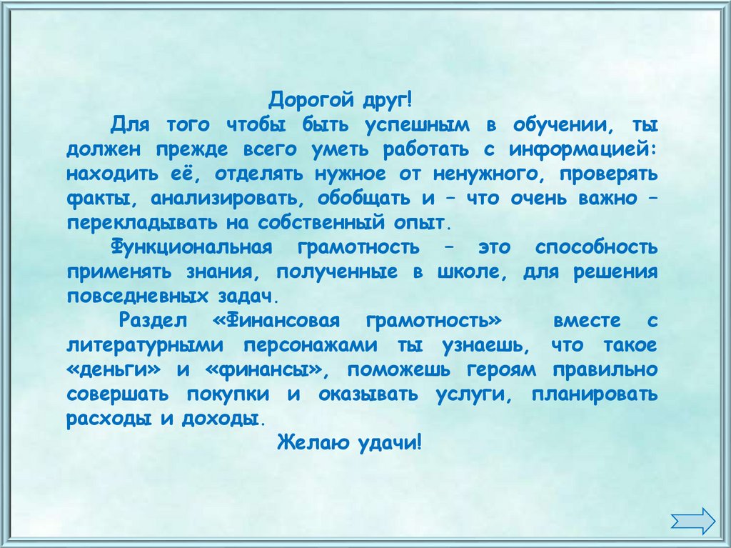 Дорогой друг!Для того чтобы быть успешным в обучении, ты