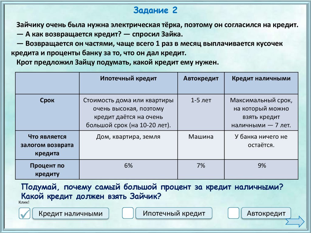 Задание 2Зайчику очень была нужна электрическая тёрка, поэтому он согласился на кредит.