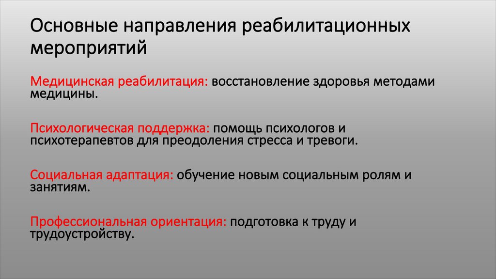 Основные направления реабилитационныхмероприятий