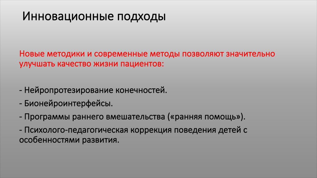 Инновационные подходыНовые методики и современные методы позволяют значительно
