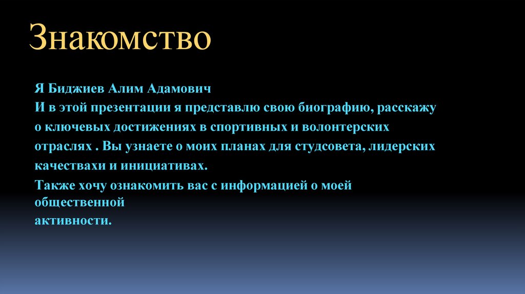 отраслях . Вы узнаете о моих планах для студсовета, лидерских