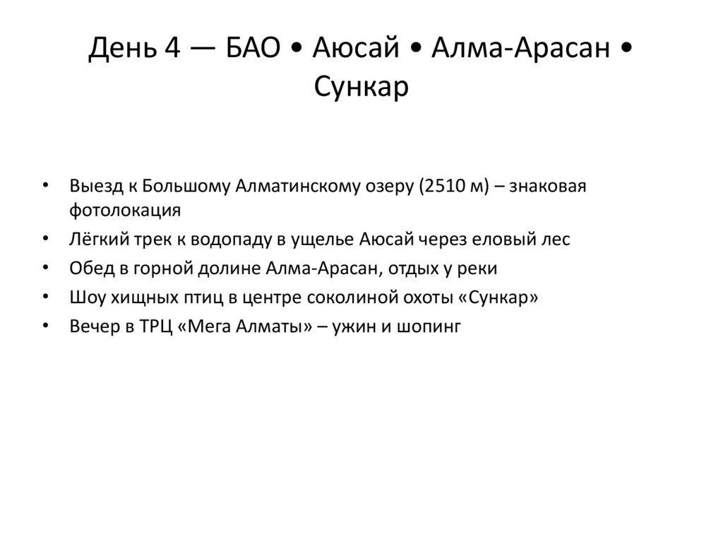 День 4 — БАО • Аюсай • Алма-АрасанСункар