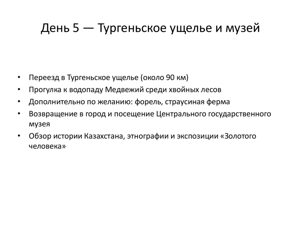 День 5 — Тургеньское ущелье и музейПереезд в Тургеньское ущелье (около 90 км)