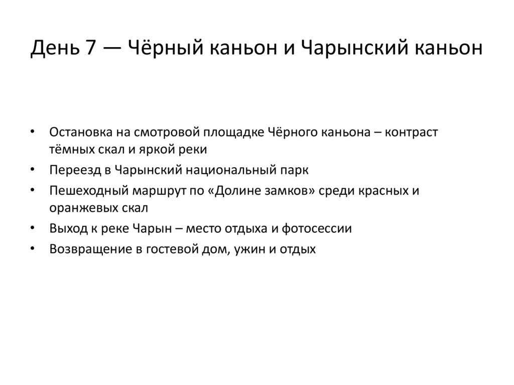 День 7 — Чёрный каньон и Чарынский каньон• Остановка на смотровой площадке Чёрного каньона – контраст