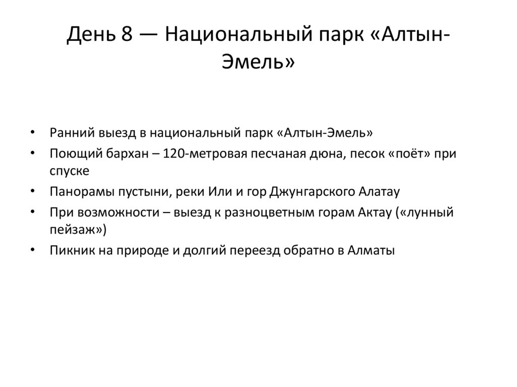 День 8 — Национальный парк «АлтынЭмель»• Ранний выезд в национальный парк «Алтын-Эмель»