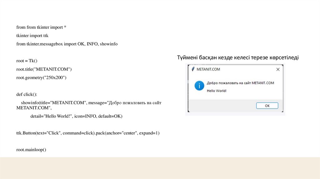 showinfo(title="METANIT.COM", message="Добро пожаловать на сайт