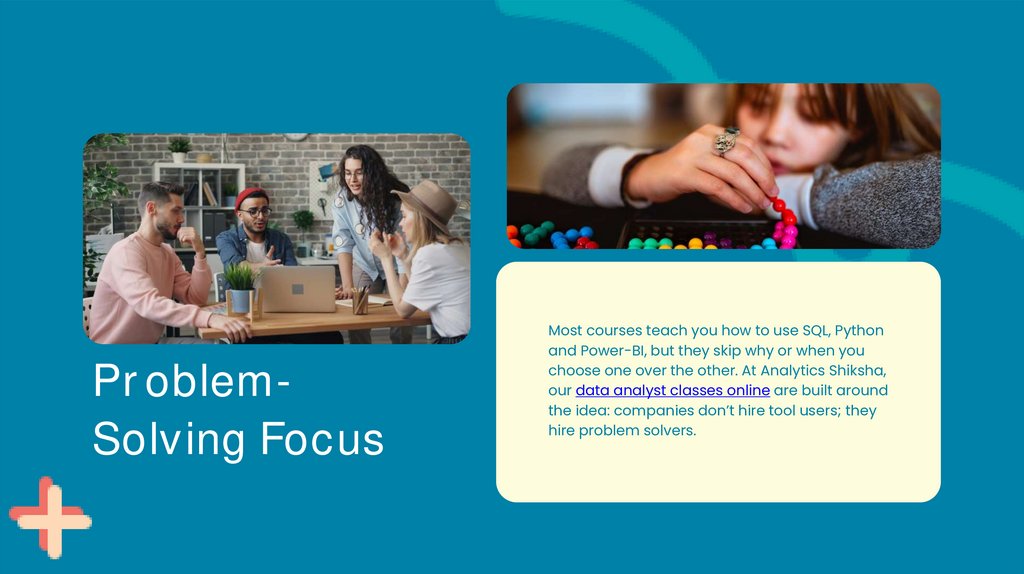 ProblemSolving FocusMost courses teach you how to use SQL, Python