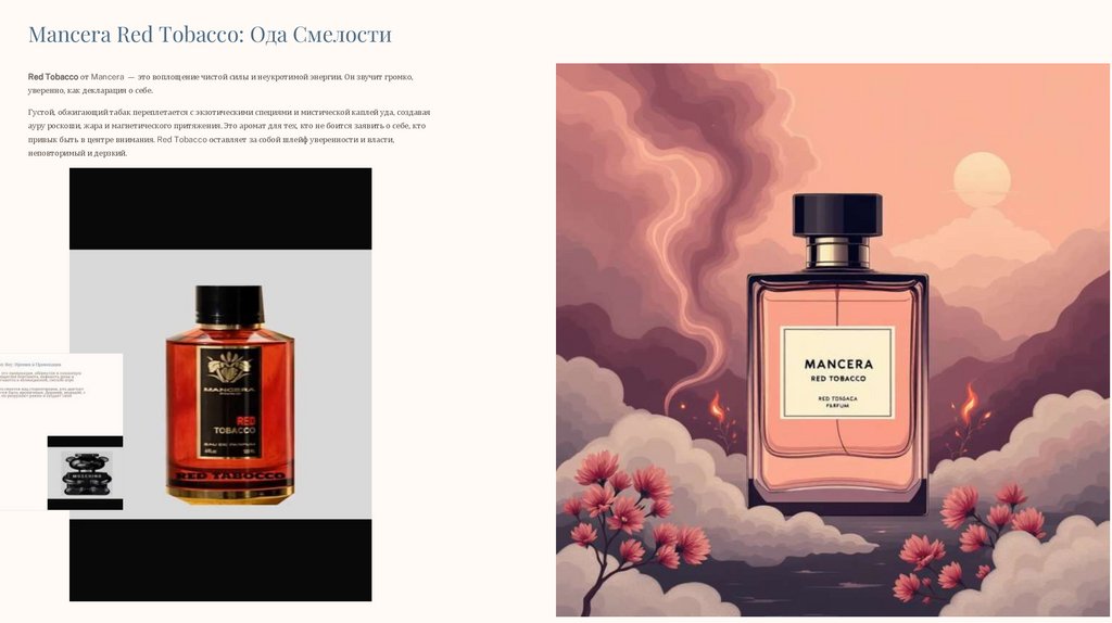 Mancera Red Tobacco: Ода СмелостиRed Tobacco от Mancera — это воплощение чистой силы и неукротимой энергии. Он звучит громко,