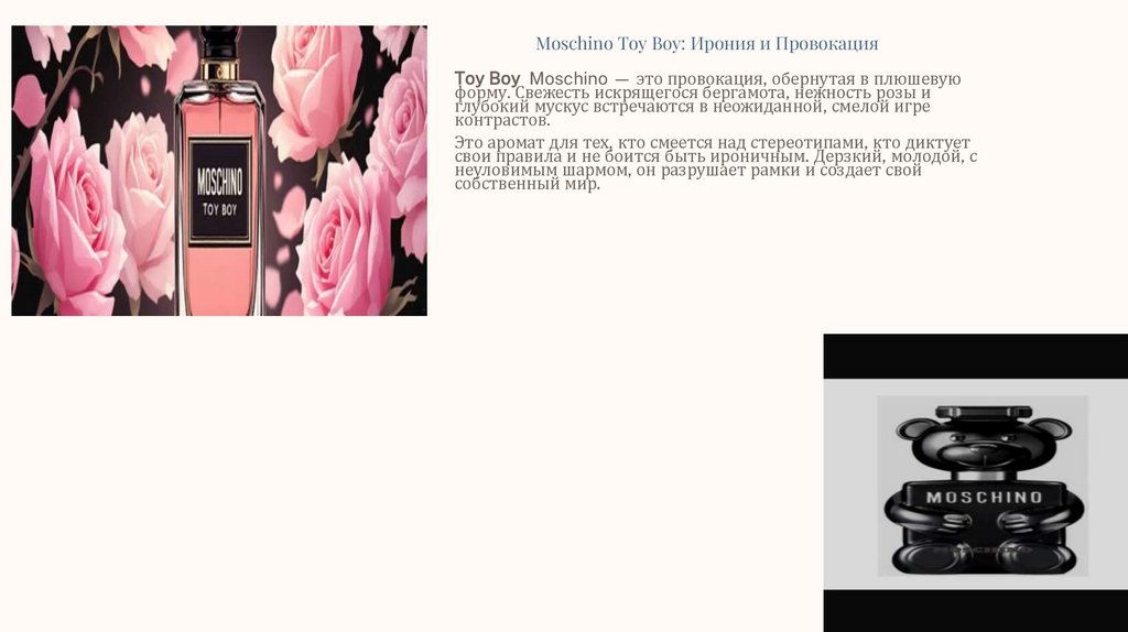 Moschino Toy Boy: Ирония и ПровокацияToy Boy Moschino — это провокация, обернутая в плюшевую