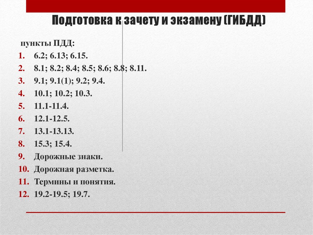 1. Подготовка к зачету и экзамену (ГИБДД)