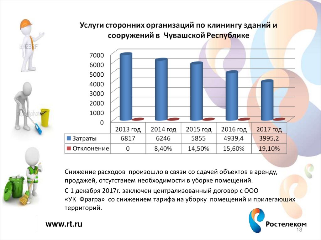 оказанных услуг с целью сокращения затрат по централизованному договору клининга и ТО с АО УК «Фрагра»;