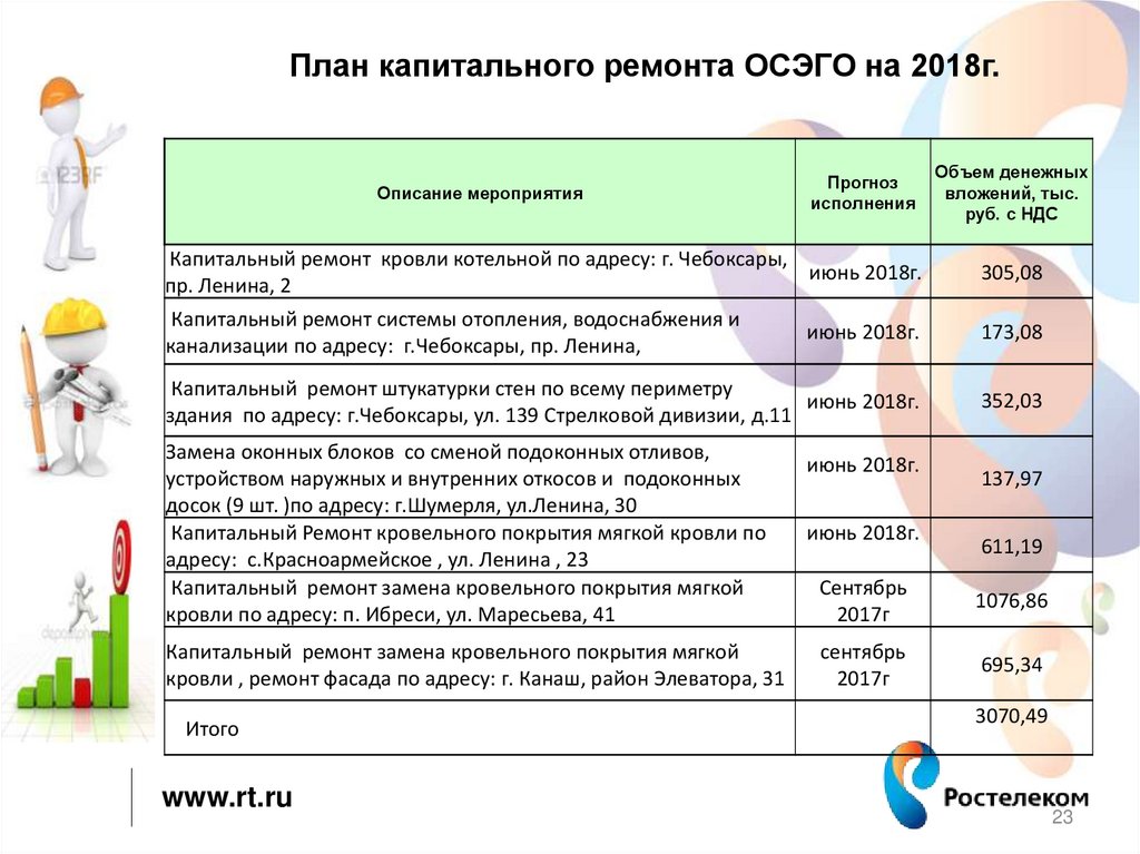 План капитального ремонта ОСЭГО на 2018г.Описание мероприятия