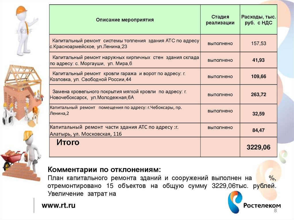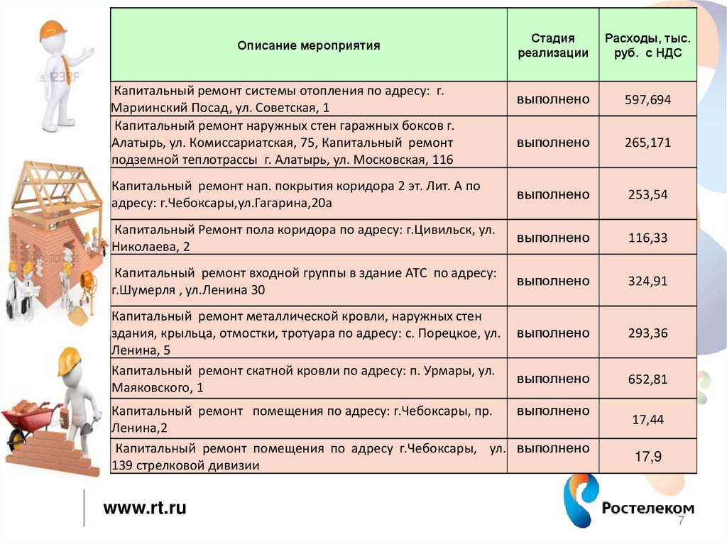 - проведение капитального ремонта на 7 объектах Филиала путем заключения рамочного договора на все